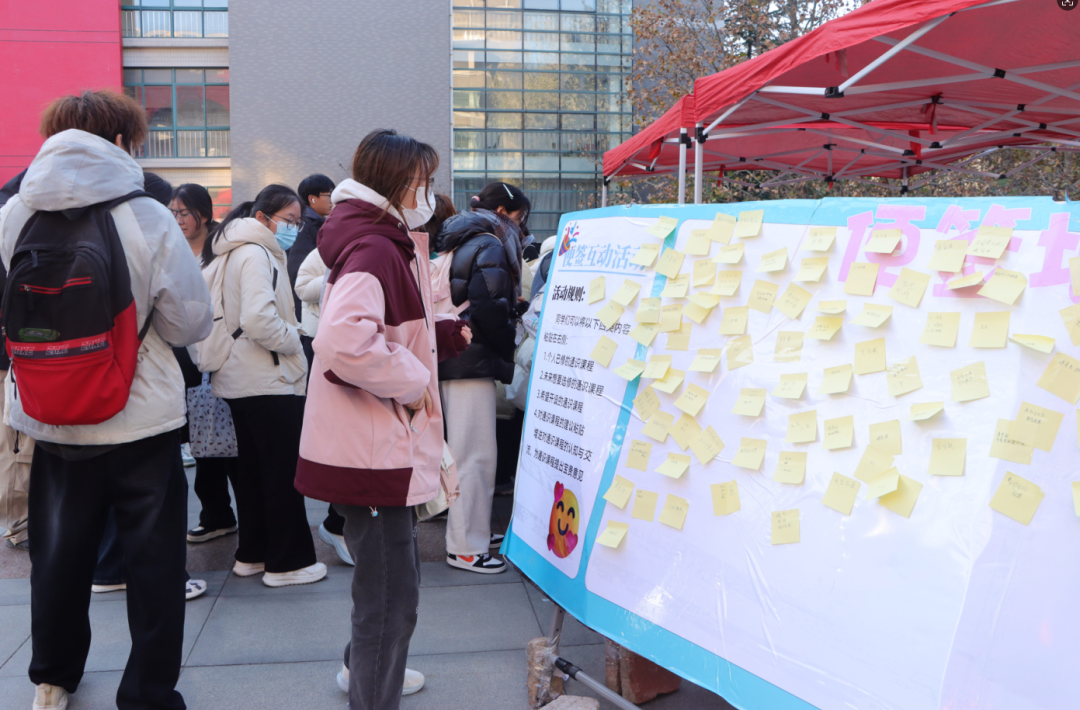 “已修《中国书法艺术》,想选《生态伦理学》!”“希望开设《中医养生智慧》通识课!”在便签互动活动现场,海报前人头攒动,参与者纷纷拿起笔,将自己的通识课程学习经历、选课心愿和改进建议写在便签上,逐一粘贴形成色彩斑斓的“心愿墙 ”,文字或质朴真挚,或创意十足,既有对已修课程的点赞,也有对未来课程的憧憬,更有对通识教学形式的创新提议。