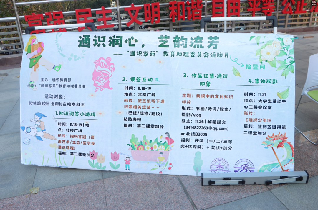 为深化通识教育内涵,搭建课程学习与文化交流的互动平台,近日,通识家苑教育助理委员会在泰安校区组织开展了以“通识润心,艺韵流芳”为主题的系列通识文化活动。活动通过知识问答、便签互动两大特色环节,串联多领域通识内容,让通识教育在趣味互动中浸润心灵,在思想碰撞中传递温度。